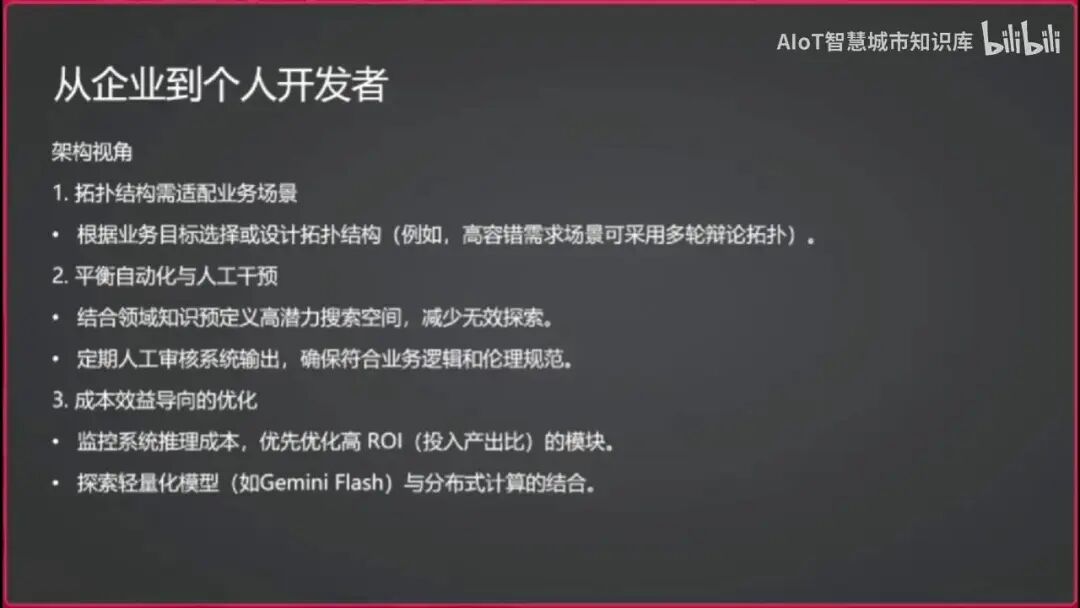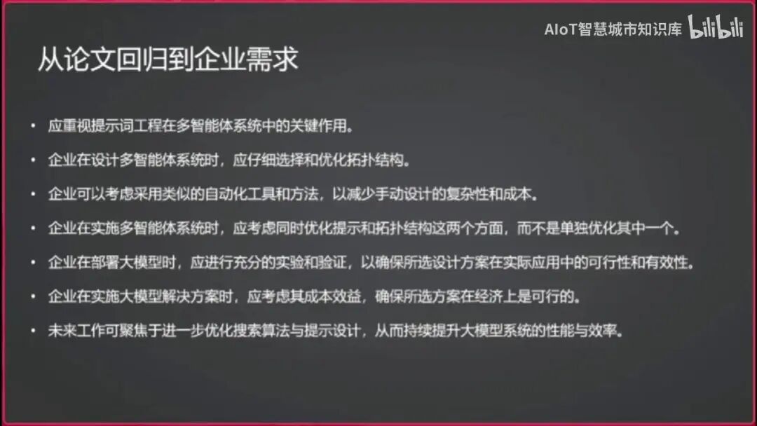 从论文到企业实践存在一套通用方法论。例如,基于论文结论落地企业应用时,若验证结论正确,可采用自动化工具优化提示词。相比优化拓扑结构,提示词优化能创造更大价值,实现自动化并减少手动设计复杂拓扑的工作量。