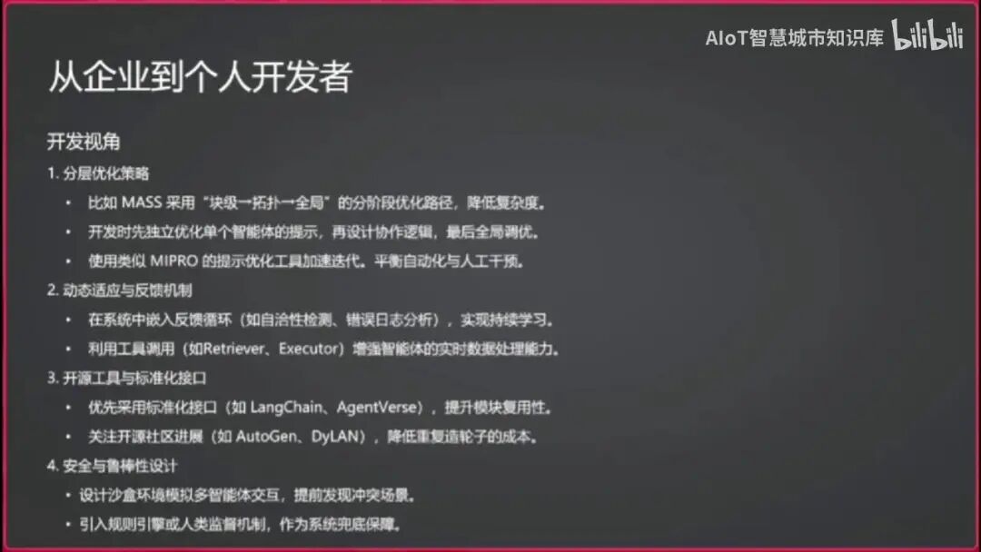 在大模型方面,我们是否可以采用轻量版本来优化提示词,以实现相应目标?这是架构师的视角。那么,从个人开发者角度来看,这些内容实际上又回归到了传统开发领域。