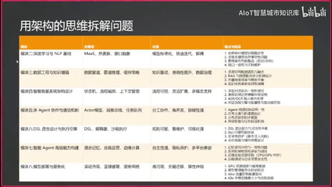 在部署和服务优化环节,我们可以将案例拆解为多个模块。首先展示整体架构,随后分解为各个功能模块,类似于拼图的小块。每个模块中会涉及架构设计中的核心关键词,这些概念对于大家而言已经非常熟悉。