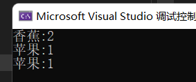 {map<string, int> mst;string s[] = {"香蕉","苹果","橘子","橙子","香蕉" ,"香蕉" ,"橘子" ,"椰子"};for (auto& sit : s){mst[sit]++;//首先从map里面找与sit相同的元素,如果没有就插入该元素并初始化value,如果有就找到该元素并对该元素的value值++}for (auto& mit : mst){cout << mit.first << ":" << mit.second << endl;}