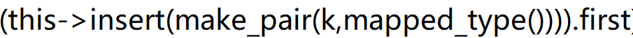对上面这段代码进行解释,首先调用这段语句通过make_pair函数创建了一个pair对象,其中first是要插k,second则是根据默认构造函数创建的值;其次调用这段语句
