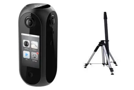 ![]() | 全景相机+三脚架 | 操作简单 便携 一键拍摄 | 画质相较于单反和无人机有差距 |