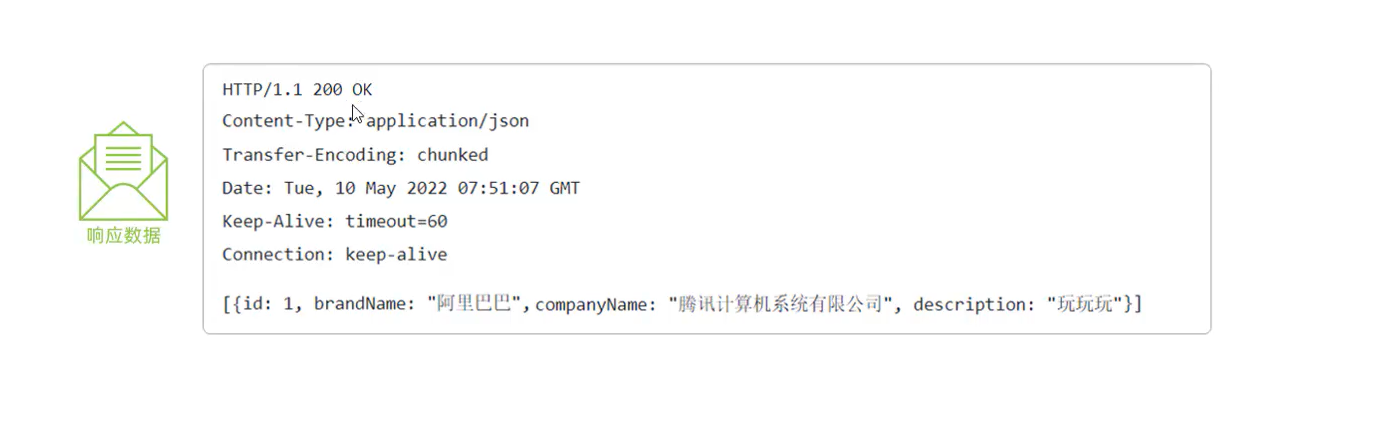 作用:将方法返回值直接响应,如果返回值类型是实体对象/集合,将会转换为JSON格式响应