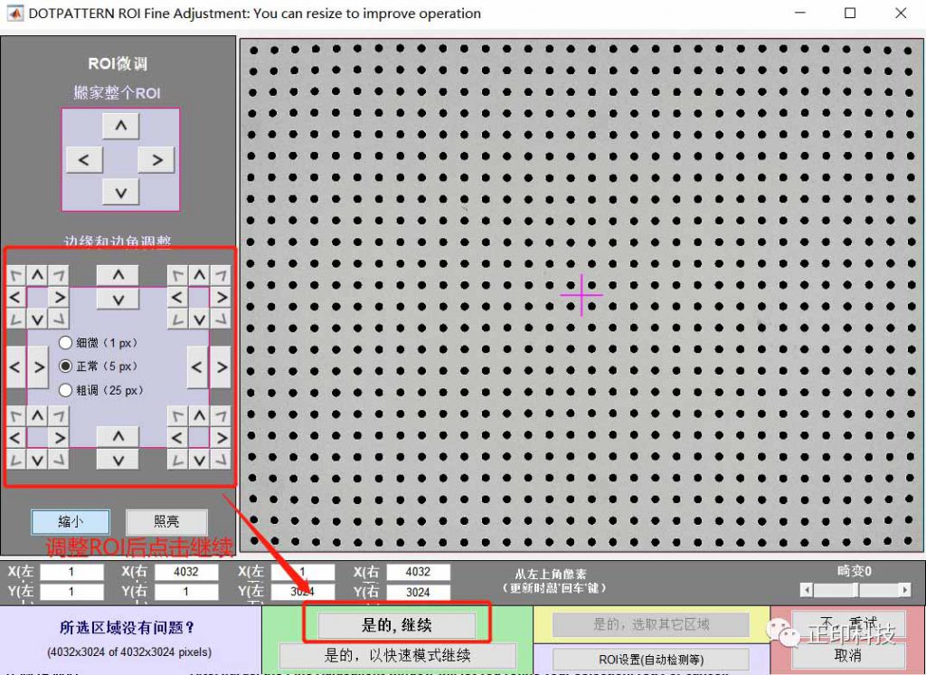 进行ROI微调,使十字标处于ROI的中心区域,此时的光学中心与取景中心理论上会处于同一位置