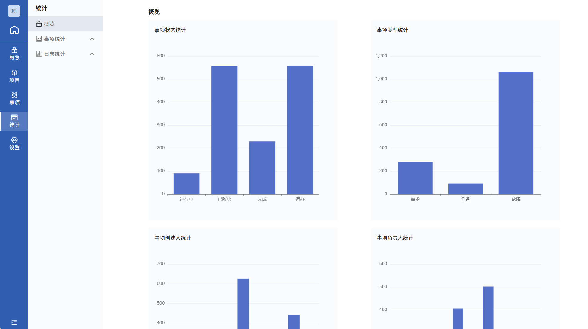 显示当前登录用户的待办事项、进行中事项、已完成事项、逾期事项。点击不同的tab会跳转到对应的筛选结果。