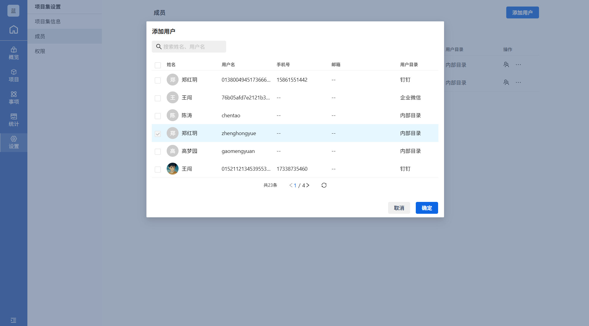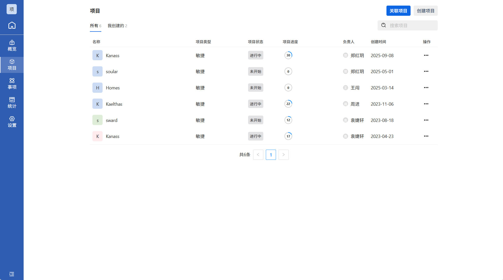项目集的事项页面,显示当前项目集所关联的所有项目下的事项。方便管理者可以在一个页面查看所有事项。