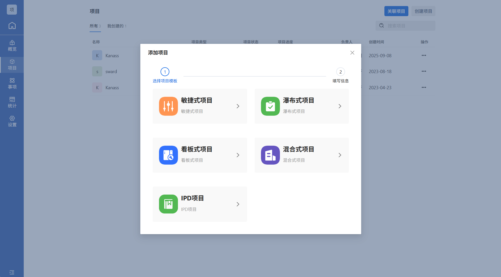 项目集中不仅可以关联已存在的项目,还可以创建新的项目。创建成功后,新项目自动关联此项目集