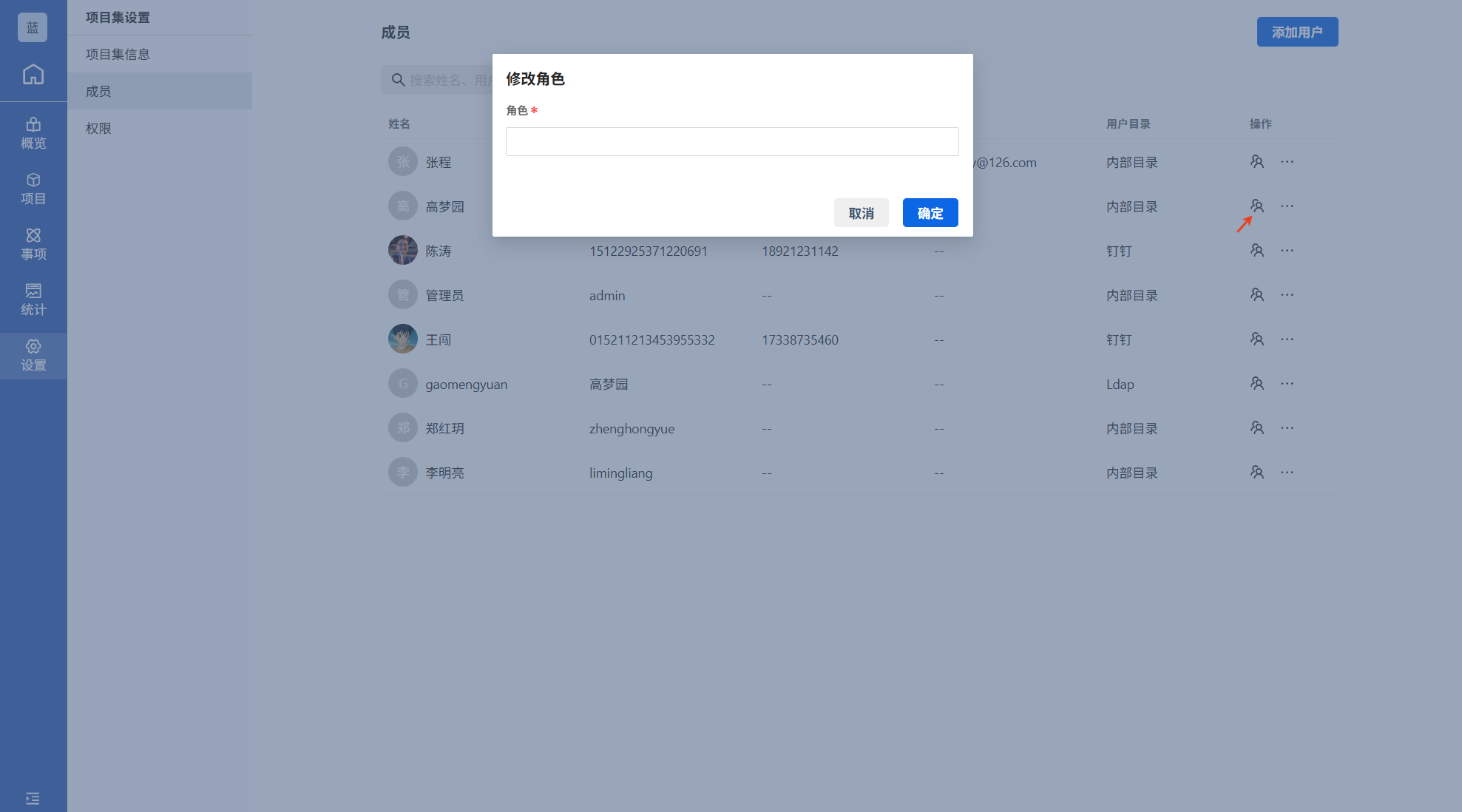进入项目集设置页面,在项目集信息页面中修改项目集