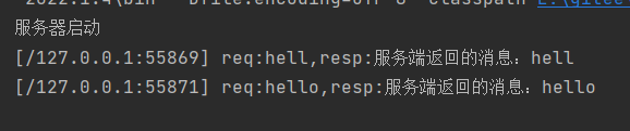 import java.net.*;public class EdpChoServe {private DatagramSocket socket = null;public EdpChoServe(int port) throws SocketException {socket = new DatagramSocket(port);}public void start() throws IOException {System.out.println("服务器启动");while (true){//创建接收缓冲区DatagramPacketDatagramPacket requestparcket = new DatagramPacket(new byte[1024],1024);//接收客户端数据socket.receive(requestparcket);//将数据转化为字符串类型String request = new String(requestparcket.getData(),0, requestparcket.getLength());//将转化后的数据通过process方法进行处理(此处直接返回,如果要进行相关数据的处理直接修改process方法)String response = process(request);//再次创建DatagramPacket套接字,将加工的数据给客户端发送DatagramPacket responsePacket = new DatagramPacket(response.getBytes(),response.getBytes().length,requestparcket.getSocketAddress());//发送数据socket.send(responsePacket);//打印客户端地址,端口,请求和相应信息System.out.printf("[%s:%d] req:%s,resp:%s\n",requestparcket.getAddress().toString(),requestparcket.getPort(),request,response);}}private String process(String request){String response = "服务端返回的消息:"+request;return response;}public static void main(String[] args) throws IOException {EdpChoServe serve = new EdpChoServe(1010);serve.start();}