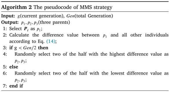 本文提出一种基于最大均值差异(MMD)的交配选择策略,通过量化个体间分布差异来动态调整搜索行为。在演化初期优先选择差异度大的个体作为父代,增强全局探索能力;在演化后期则侧重选择相似个体,加强局部开发效率。MMD作为再生核希尔伯特空间中的分布距离度量工具,能够有效处理高维决策变量的差异评估。