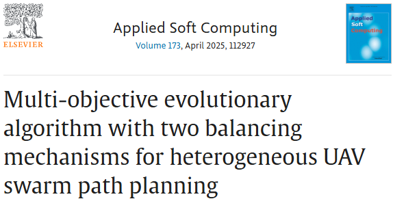 [1] Xu X, Xie C, Ma L, et al. Multi-objective evolutionary algorithm with two balancing mechanisms for heterogeneous UAV swarm path planning[J]. Applied Soft Computing, 2025, 173: 112927.