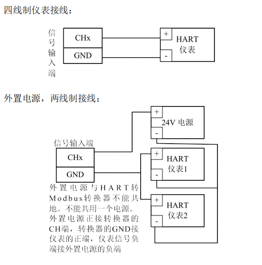 1、两线制仪表接线(加入仪表需要 24V 供电,则模块供电电压也要