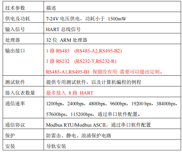 HART 转 Modbus 模块实现将HART 信号中的数字信号转换为符
