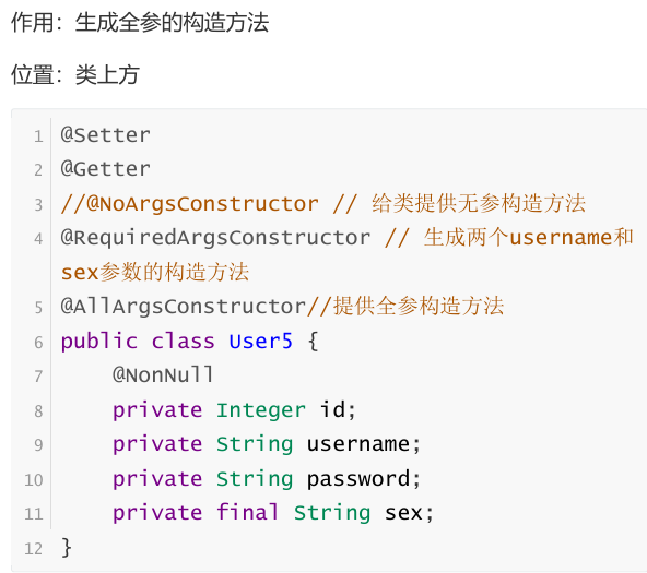 作用:相当于同时添加@Setter、@Getter、@ToString、 @EqualsAndHashCode、 @RequiredArgsConstructor五个注解