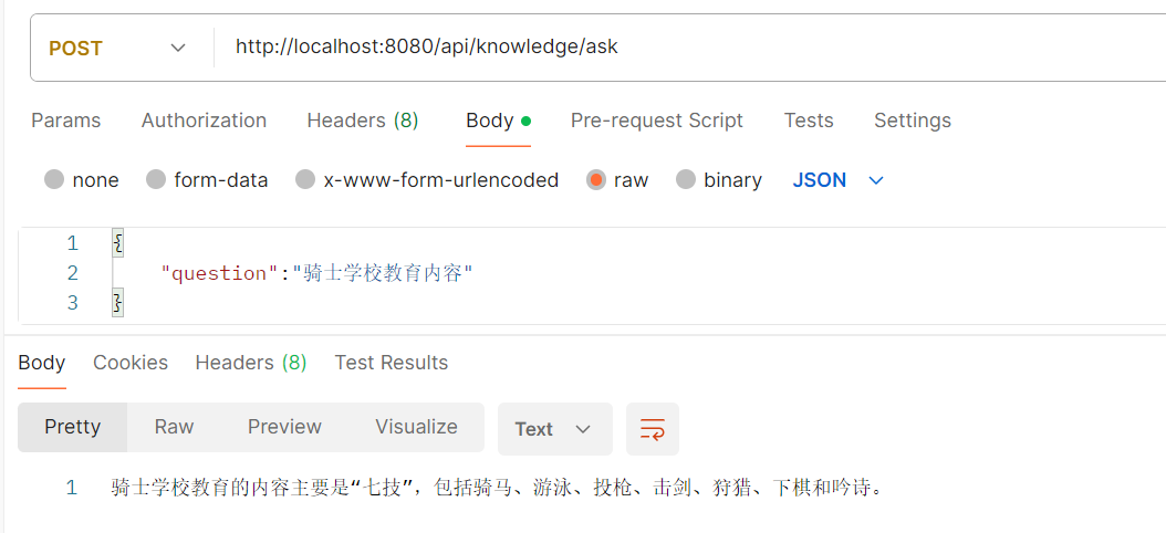 后端:除了和前端的交互外我新加了一个 rag 功能,用于知识库的保存和检索,使用的 redis 向量库,通过postman调用