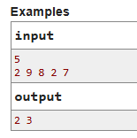 — the amount of bars on the table.The second line contains a sequence t1,t2...tn(t1>0),