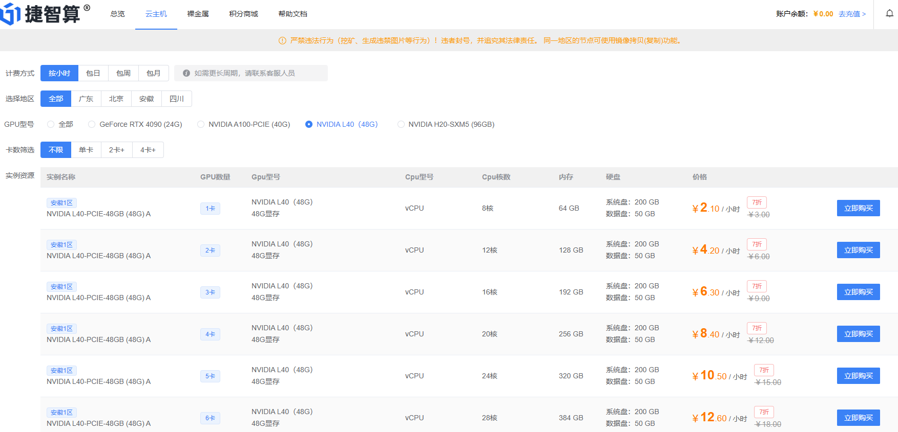 捷智算算力租赁平台敏锐捕捉到这一拐点,将即开即用写进产品DNA:用户完成注册后,点击“创建实例”即可在五分钟内拿到带驱动的L40云主机租赁环境,无需人工审核。平台底层采用自研智算调度系统,可根据任务负载自动弹性伸缩,训练高峰秒级扩容,推理低谷即时回收,资源利用率提升50%以上。