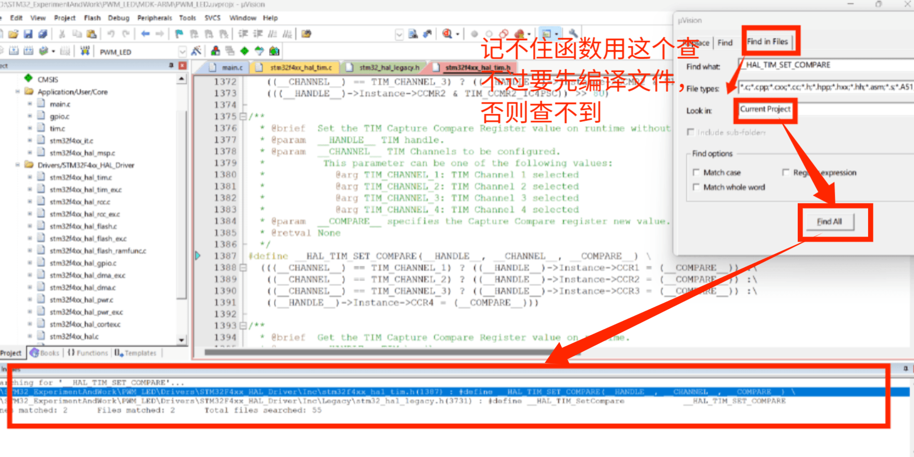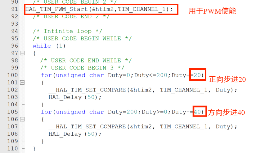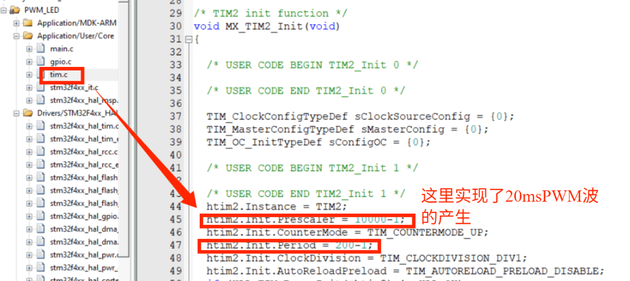 下面以实现一个PWM周期为20ms的方波产生双向呼吸灯为例