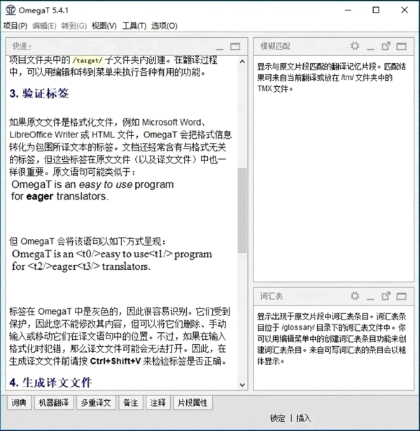 OmegaT 是一款计算机辅助翻译(CAT)工具,名字取自希腊字母最后一个“Ω”,暗示翻译流程的终点。