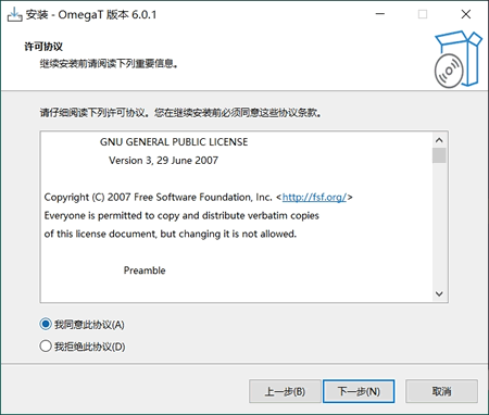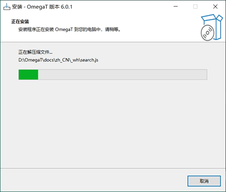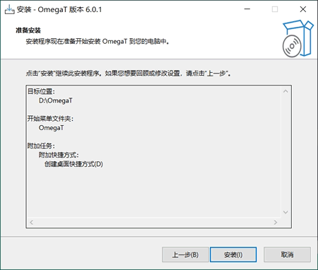 9) 点击“安装”,正式开始安装 OmegaT,弹出下图的窗口: