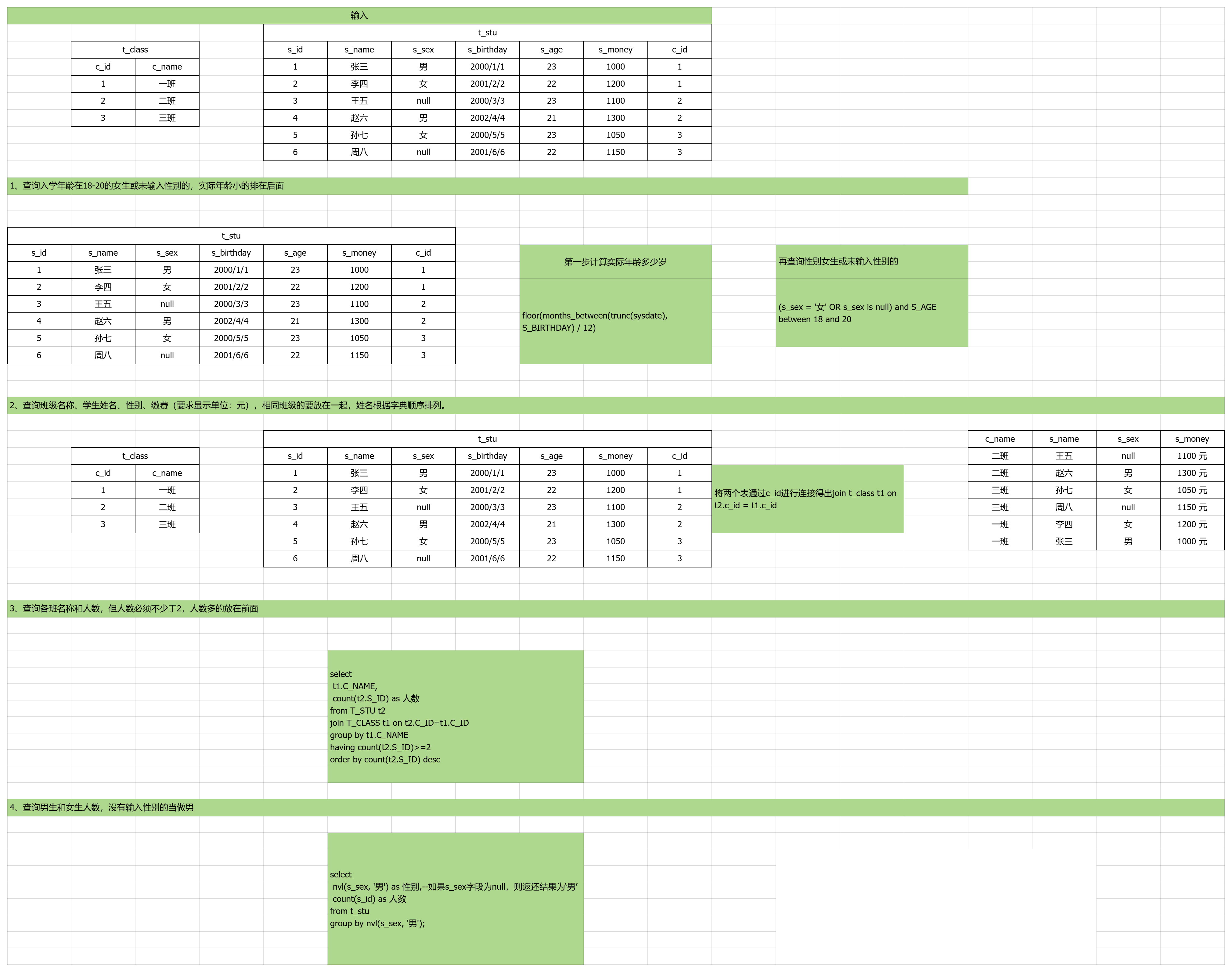 selectnvl(s_sex, '男') as 性别,--如果s_sex字段为null,则返还结果为‘男’count(s_id) as 人数
