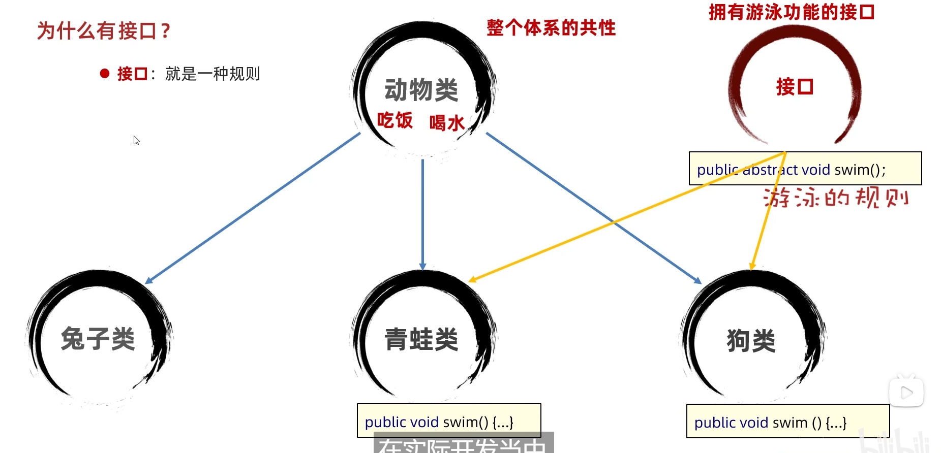 心得:我觉得接口就是:不是所有子类都有共同的某个方法,只有某几个有共同的方法,所以就把这个方法抽象到接口中,当子类需要这个方法时,就调用接口中的方法即可。