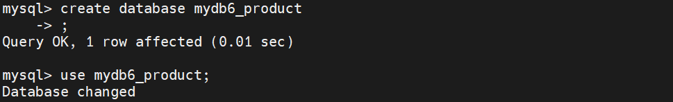 Query OK, 1 row affected (0.01 sec)mysql> use mydb6_product;