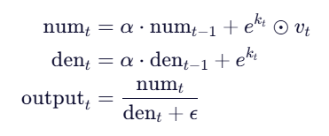 每步只更新两个维度为 d 的向量 (num,den),每步复杂度为 O(d),总复杂度O(N⋅d)≈O(N)。