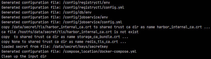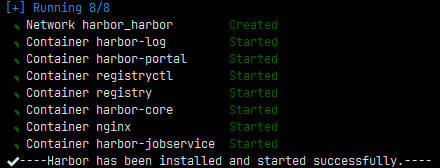 执行完成,出现 Harbor has been installed and started successfully 字样表示启动成功