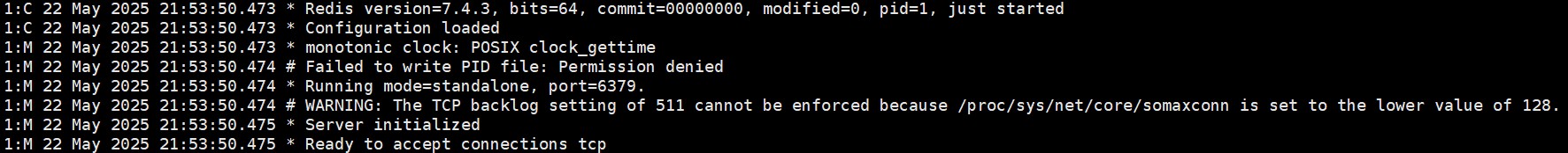 可以看到:Ready to accept connections tcp 字样表示启动成功。