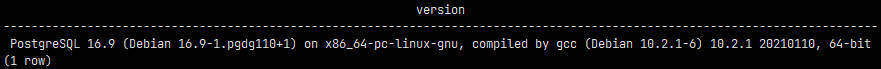 docker exec postgresql16 psql -U postgres -c "SELECT version();" |