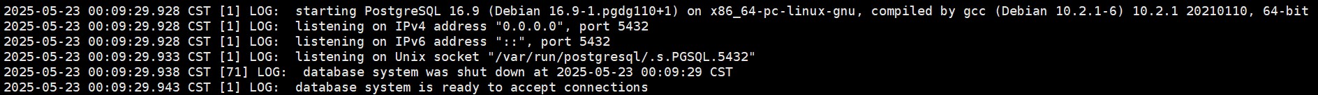 可以看到:database system is ready to accept connections 字样表示启动成功。