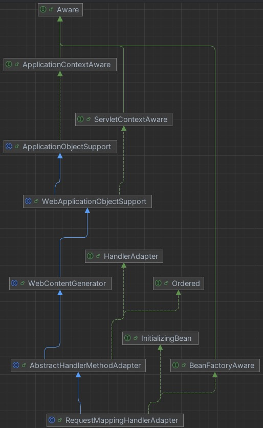 public class RequestMappingHandlerAdapter extends AbstractHandlerMethodAdapterimplements BeanFactoryAware, InitializingBean {public static final MethodFilter INIT_BINDER_METHODS = method ->AnnotatedElementUtils.hasAnnotation(method, InitBinder.class);public static final MethodFilter MODEL_ATTRIBUTE_METHODS = method ->(!AnnotatedElementUtils.hasAnnotation(method, RequestMapping.class) &&AnnotatedElementUtils.hasAnnotation(method, ModelAttribute.class));