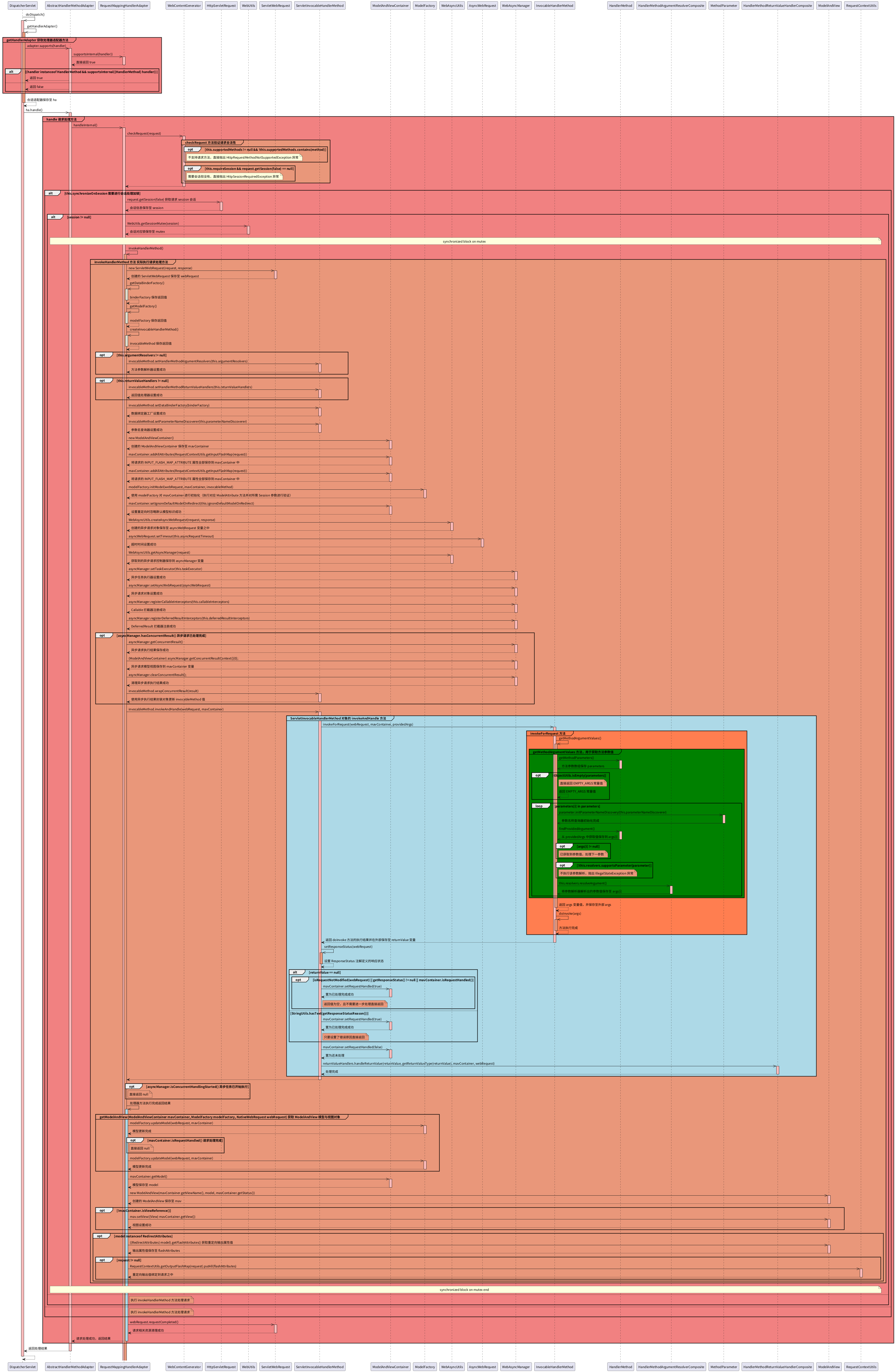 invokeHandlerMethod 方法首先创建 ServletWebRequest、WebDataBinderFactory、ModelFactory 及 ServletInvocableHandlerMethod 对象;之后依次为 ServletInvocableHandlerMethod 对象设置 argumentResolvers 参数解析器集合、returnValueHandlers 返回值处理器集合、binderFactory 数据绑定工厂及 parameterNameDiscoverer 参数名查询器;随后创建 ModelAndViewContainer 对象并向模型中添加请求的 INPUT_FLASH_MAP_ATTRIBUTE 属性,随后调用 modelFactory 的 initModel 方法对 mav 中的模型进行初始化,最后设置 ignoreDefaultModelOnRedirect 重定向忽略默认模型属性;随后获取并配置 WebAsyncManager 异步执行管理器,若异步任务已执行完成,通过 asyncManager 的 getConcurrentResult 方法获取异步执行结果并调用 getConcurrentResultContext 方法更新 mavContainer 模型视图对象与 clearConcurrentResult 方法清理异步执行结果,最后调用 invocableMethod 的 wrapConcurrentResult 方法封装异步执行结果来使不直接执行方法而是直接返回异步执行结果;之后调用 invocableMethod 的 invokeAndHandle 方法执行方法并处理返回结果;最后若异步任务已开始执行直接返回 null,否则调用 getModelAndView 方法获取执行结果模型与视图并返回。