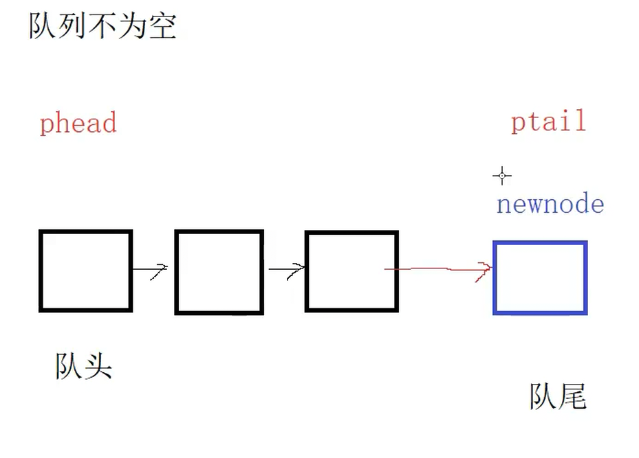 {assert(pq);//创建值为x的节点QueueNode* newnode = (QueueNode*)malloc(sizeof(QueueNode));if (newnode == NULL){perror("malloc fail!");exit(1);}newnode->data = x;newnode->next = NULL;//如果队列为空if (pq->phead == NULL){pq->phead = pq->ptail = newnode;}else{pq->ptail->next = newnode;pq->ptail = pq->ptail->next;}
