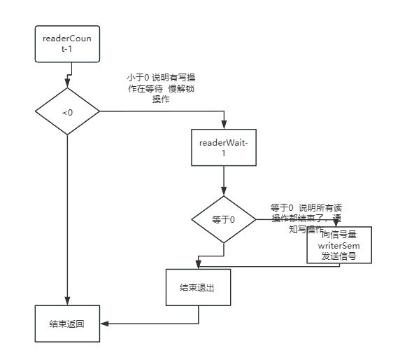 大于0,说明还有其他读操作,则不发送信号量直接返回,解锁结束