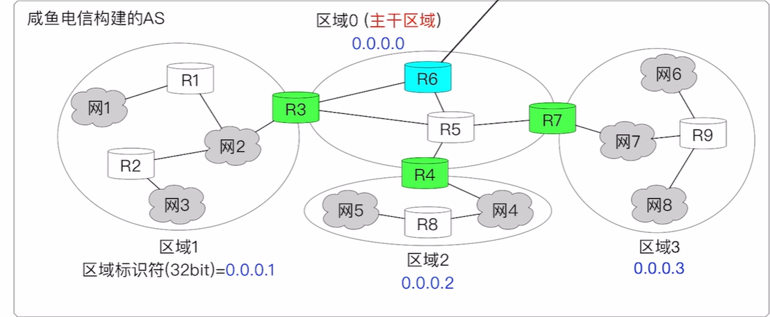 - 一个 OSPF 自治系统内,只有一个主干区域(Backbone Area)