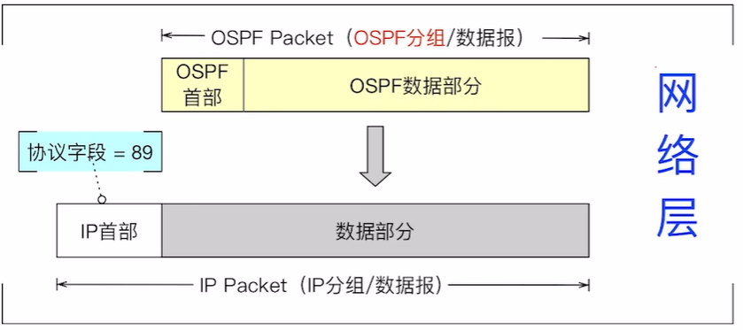 - OSPF 使用 IP 协议提供的服务,IP 首部的协议字段 = 89