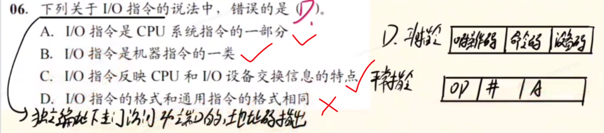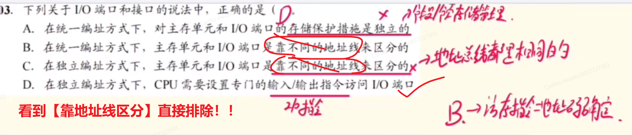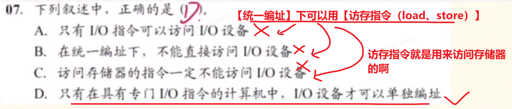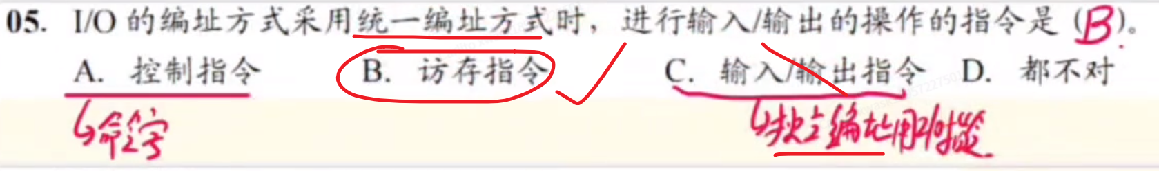 - 1、只有在具有【专门I/O指令】的计算机中,I/O设备才可以独立编址(有的计算机他没有I/O指令,那怎么单独编制啊,是吧?)