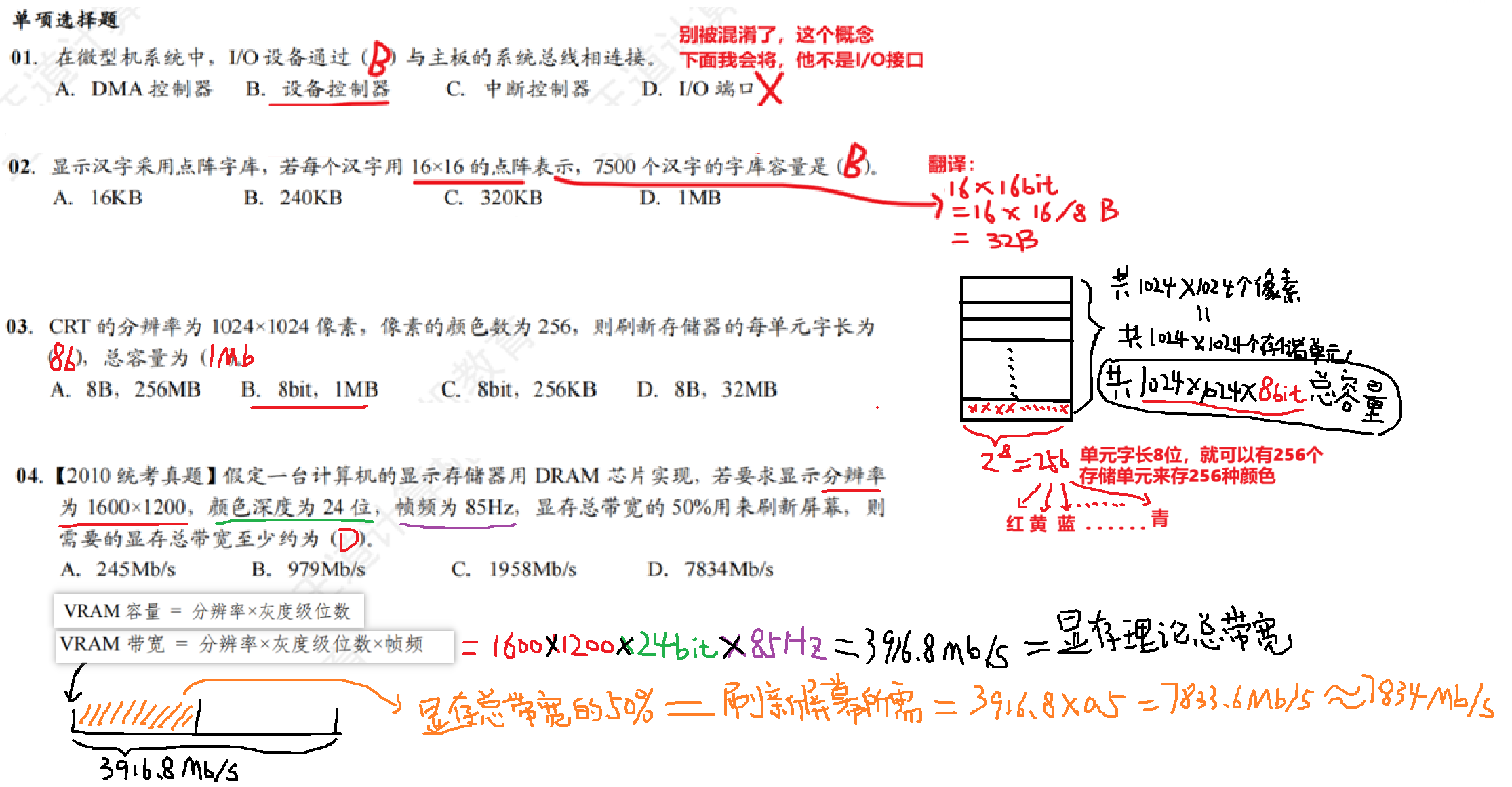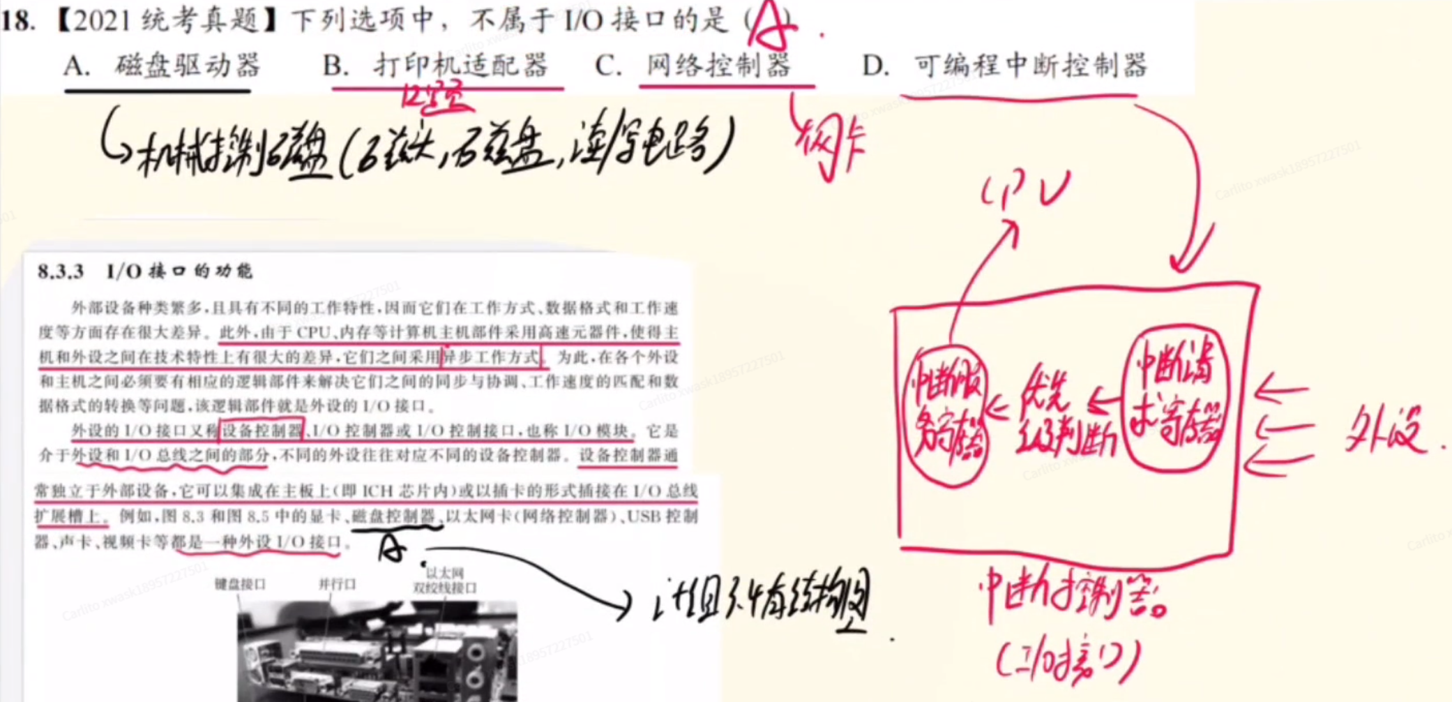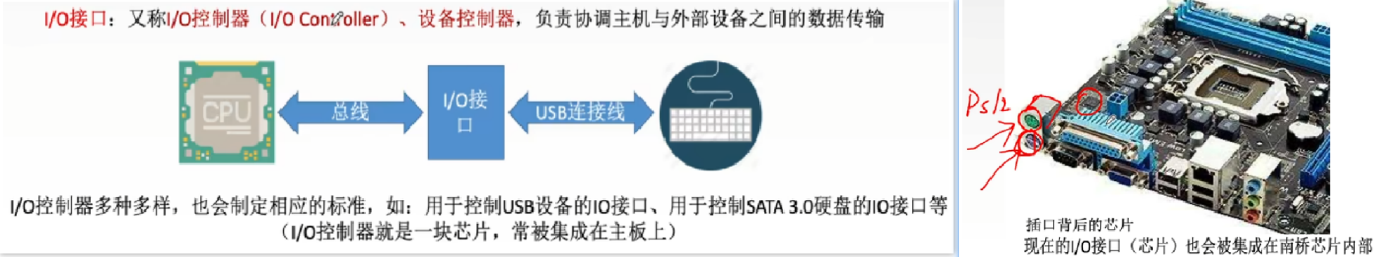 - (注意:显卡、网卡、视频卡、声卡、键盘控制器、磁盘控制器、USB控制器...都是I/O控制器),(但是磁盘驱动器不是噢!!有“...控制器”3字的才是)
