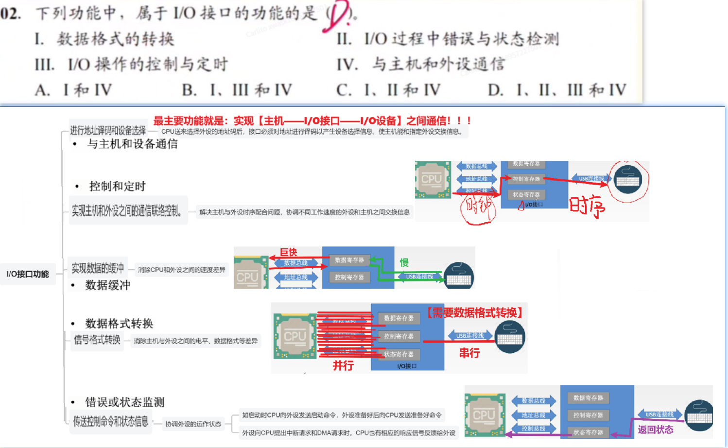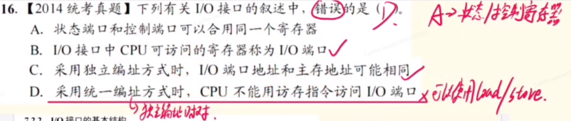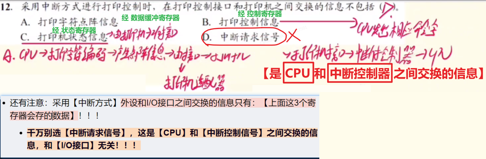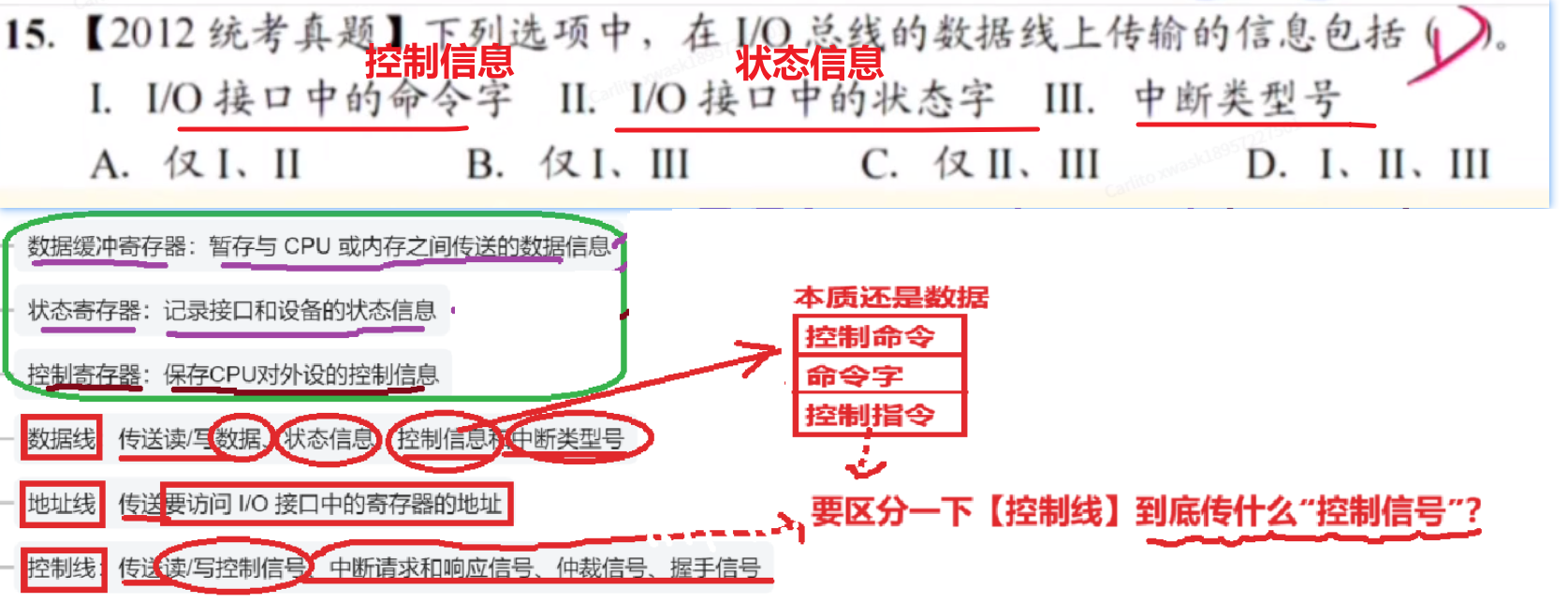 - 千万别选【中断请求信号】,这是【CPU】和【中断控制信号】之间交换的信息,和【I/O接口】无关!!!