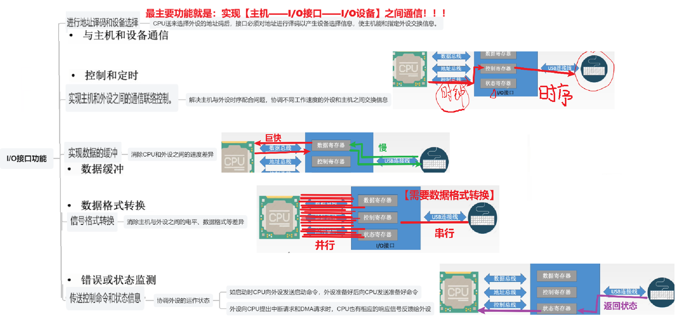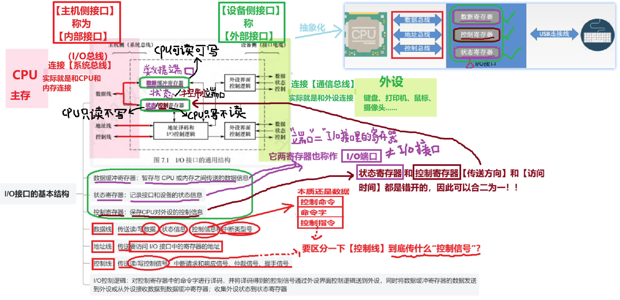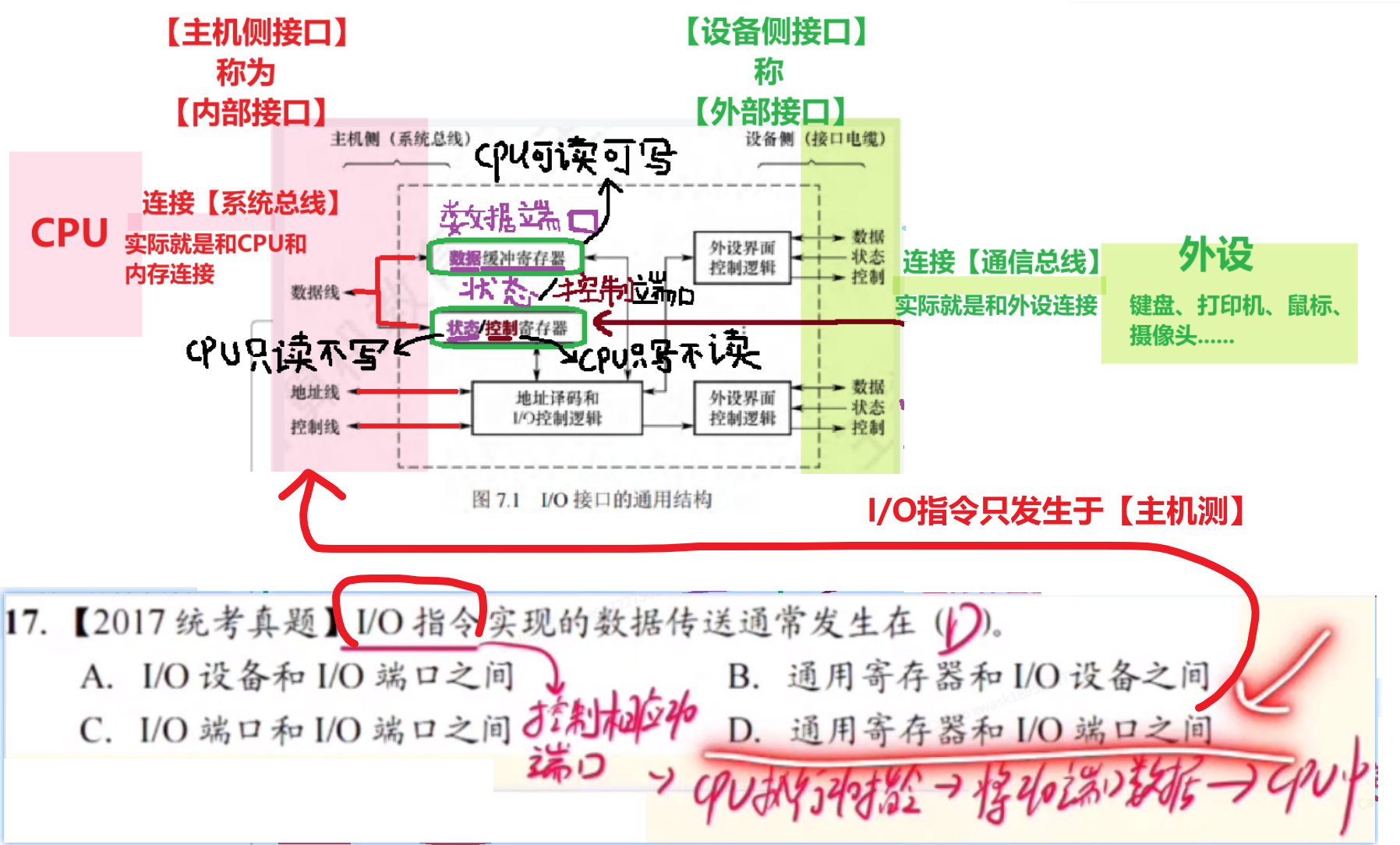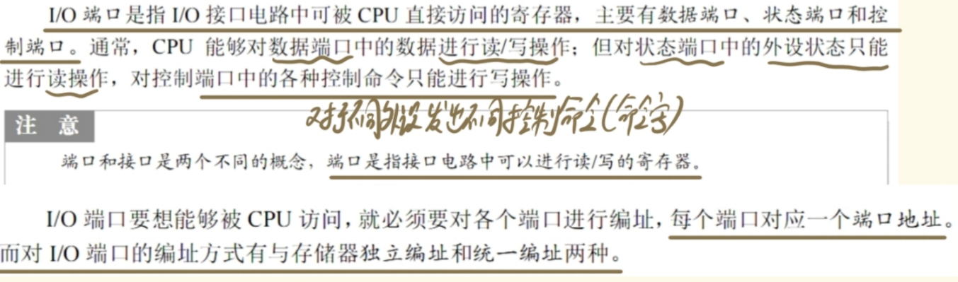 - 他只跟【CPU】和【I/O端口】二者有关系(【I/O端口】就是I/O接口里的寄存器)