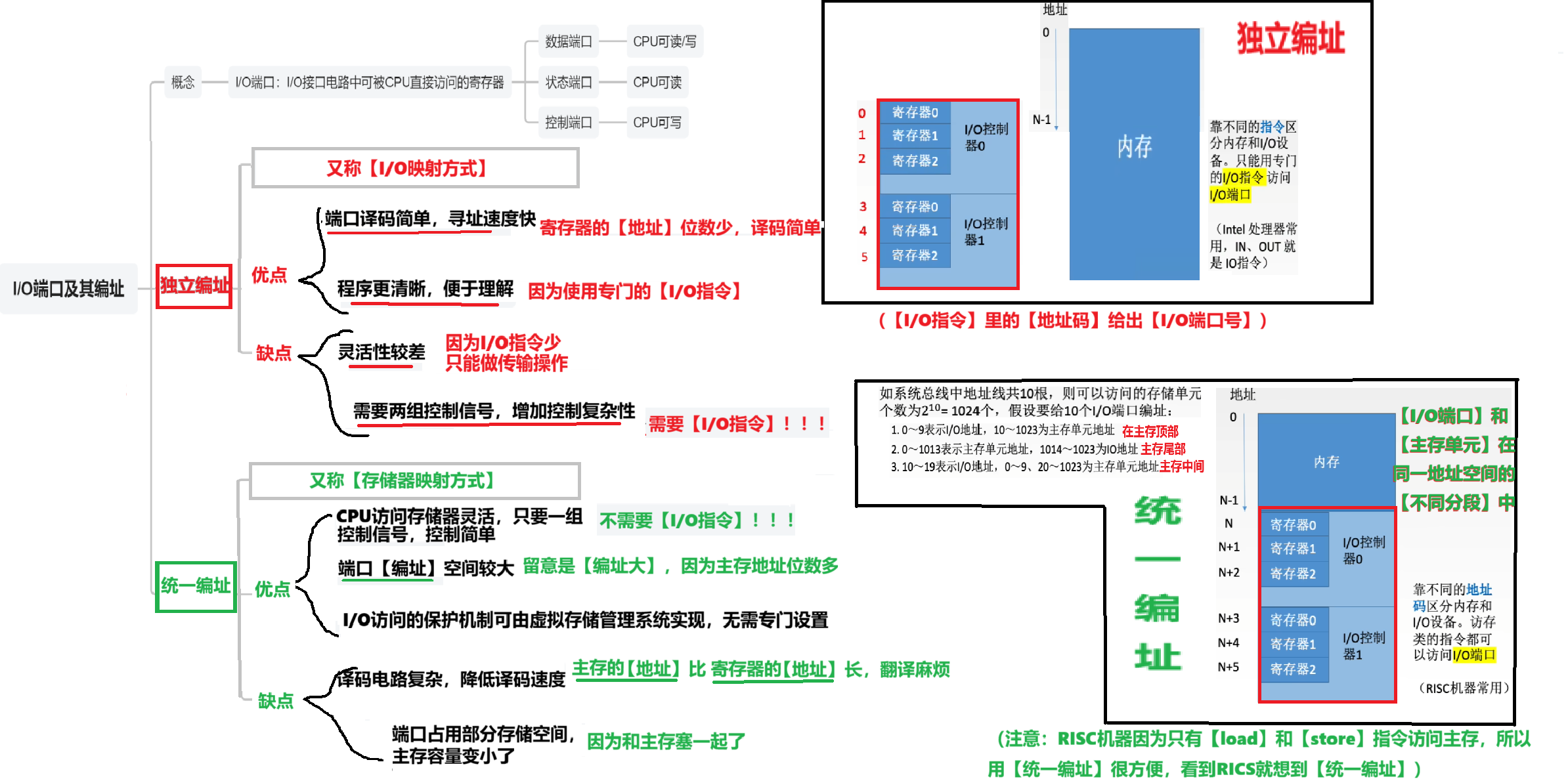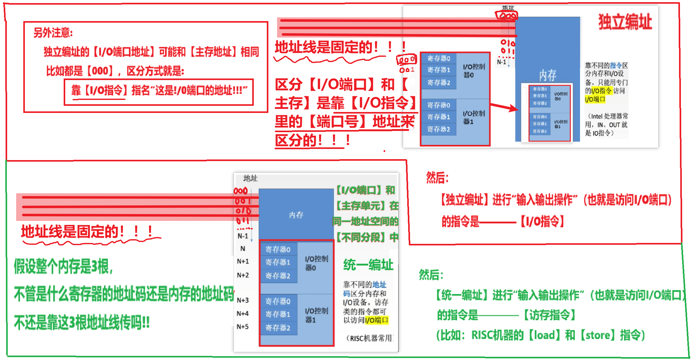 - 2、【统一编址】的【I/O端口】的地址也不可以随意乱放!!!