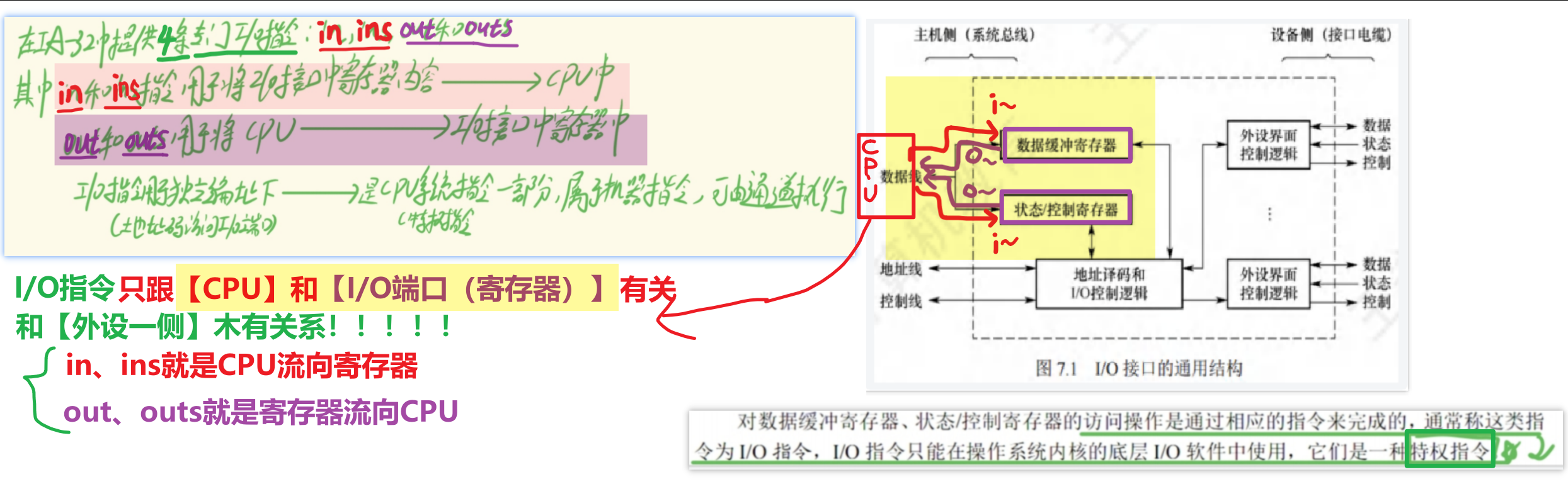 - 【I/O指令】是机器指令的一类,也是CPU系统指令的一部分