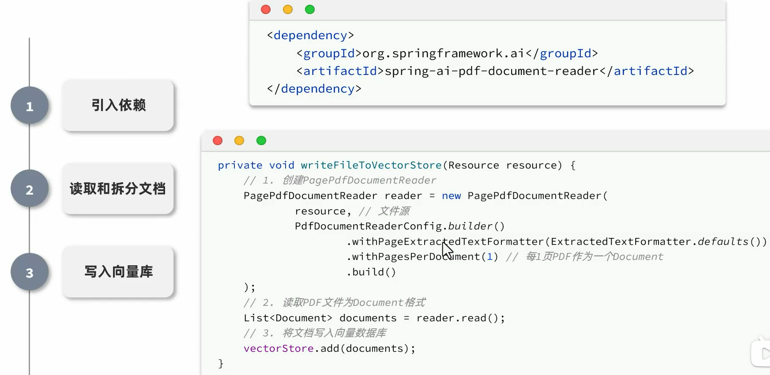 文件上传后,存储id和pdf的关系,pdf拆分为document,存入向量库