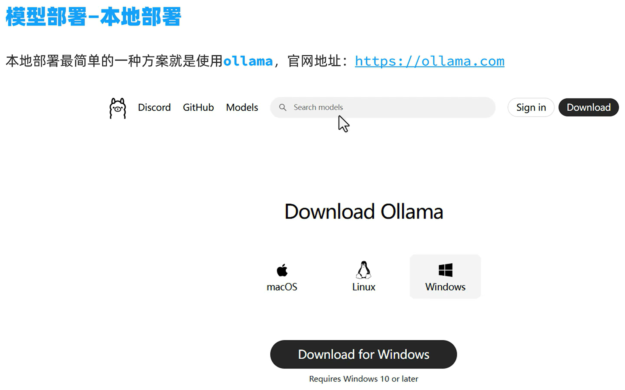 安装ollama,直接安装是在c盘,可以根据以下方式把ollama安装在D盘