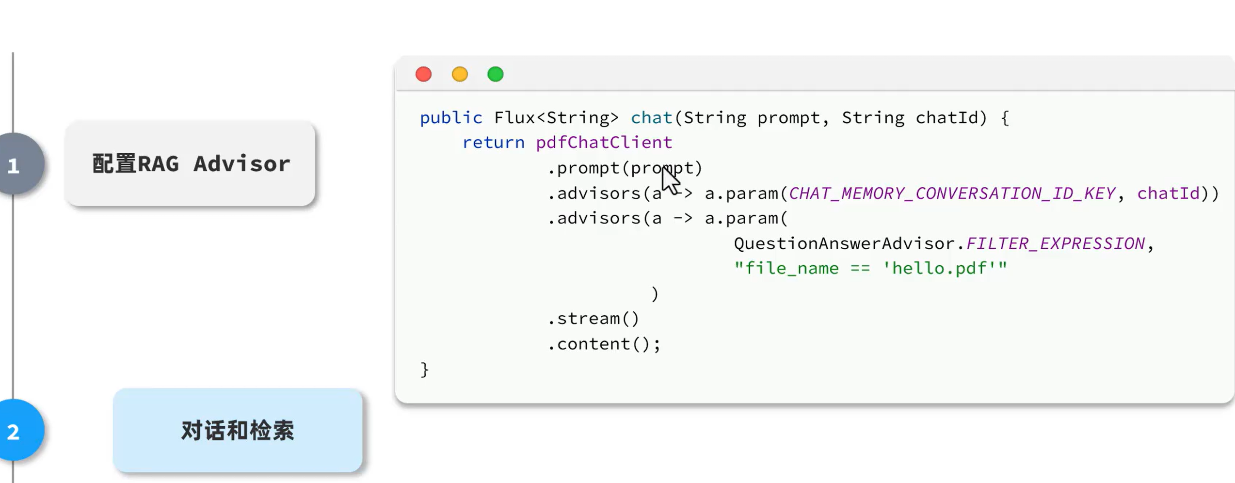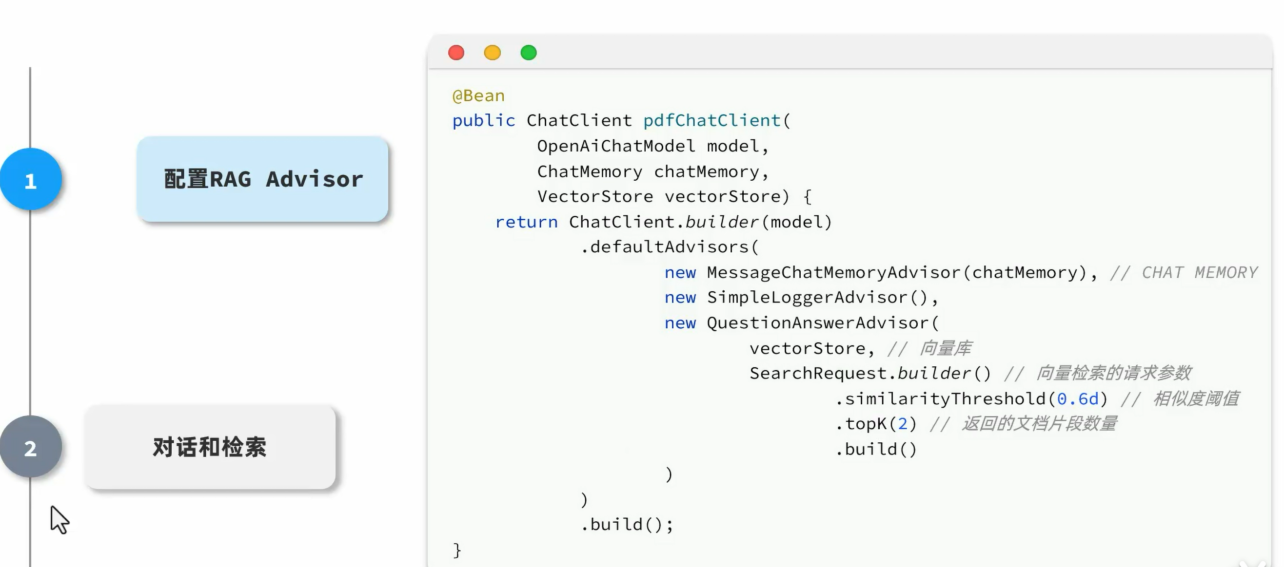 在向量库检索数据,匹配知识,拼接知识到大模型的操作由SpringAI实现