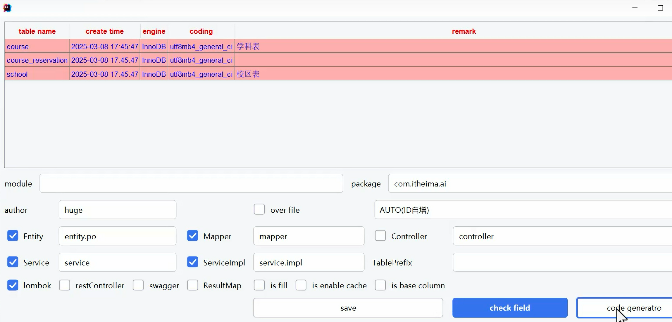 自动生成mybatis-plus相关代码