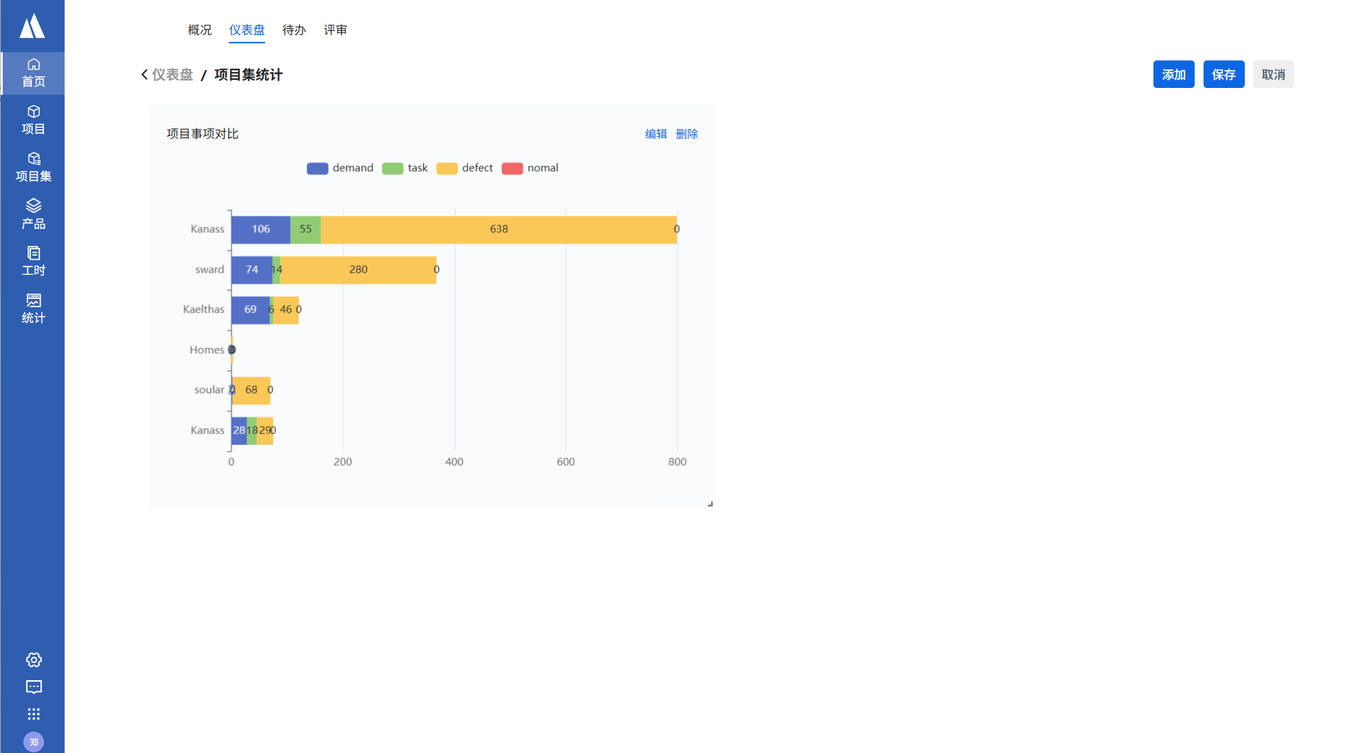 - 以柱状图的形式对比和展示项目集内各项目的事项个数