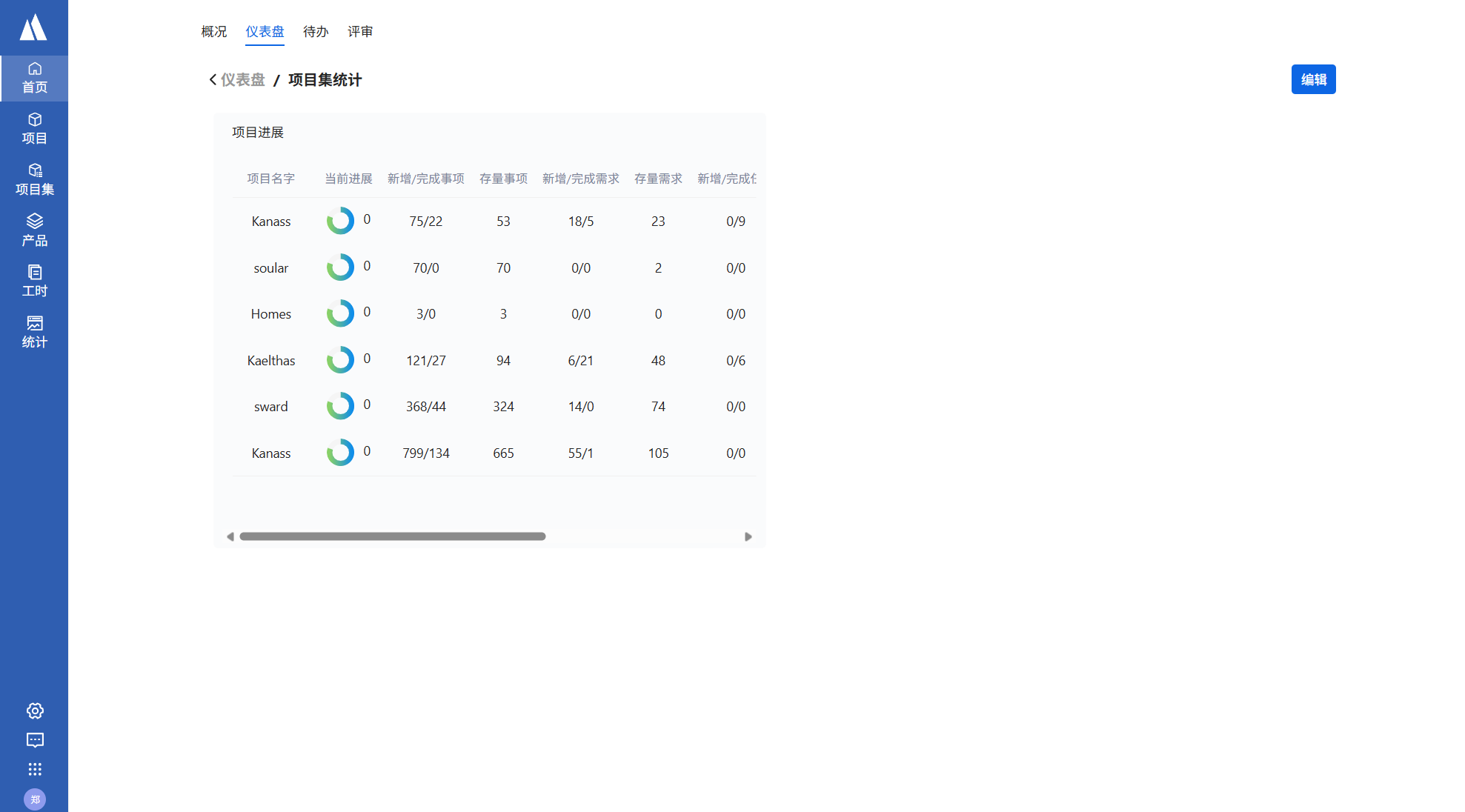 - 以表格的形式展示项目集内各项目进展